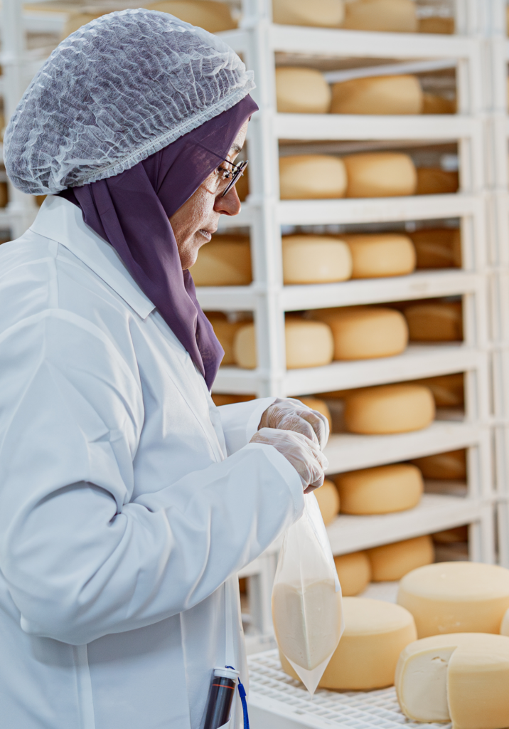 Notre équipe de contrôle qualité supervise quotidiennement les tests sur les composants de nos produits afin d’assurer la sécurité et la qualité des fromages. Les emballages sont soigneusement sélectionnés pour garantir une protection optimale et maintenir la fraîcheur et le goût de nos produits dans les délais impartis.